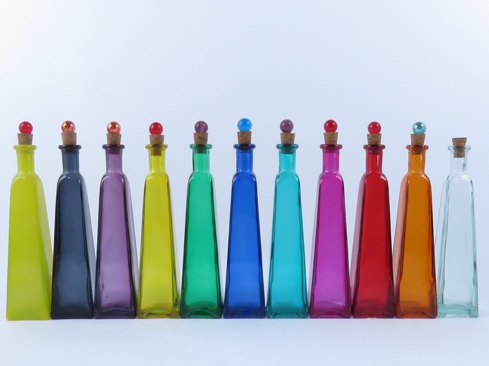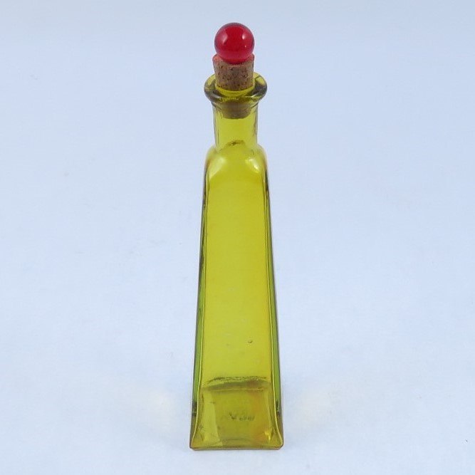 בקבוק זכוכית צהוב למילוי ולנוי, בקבוקים מעוצבים, דגם פירמידה – VitroColor